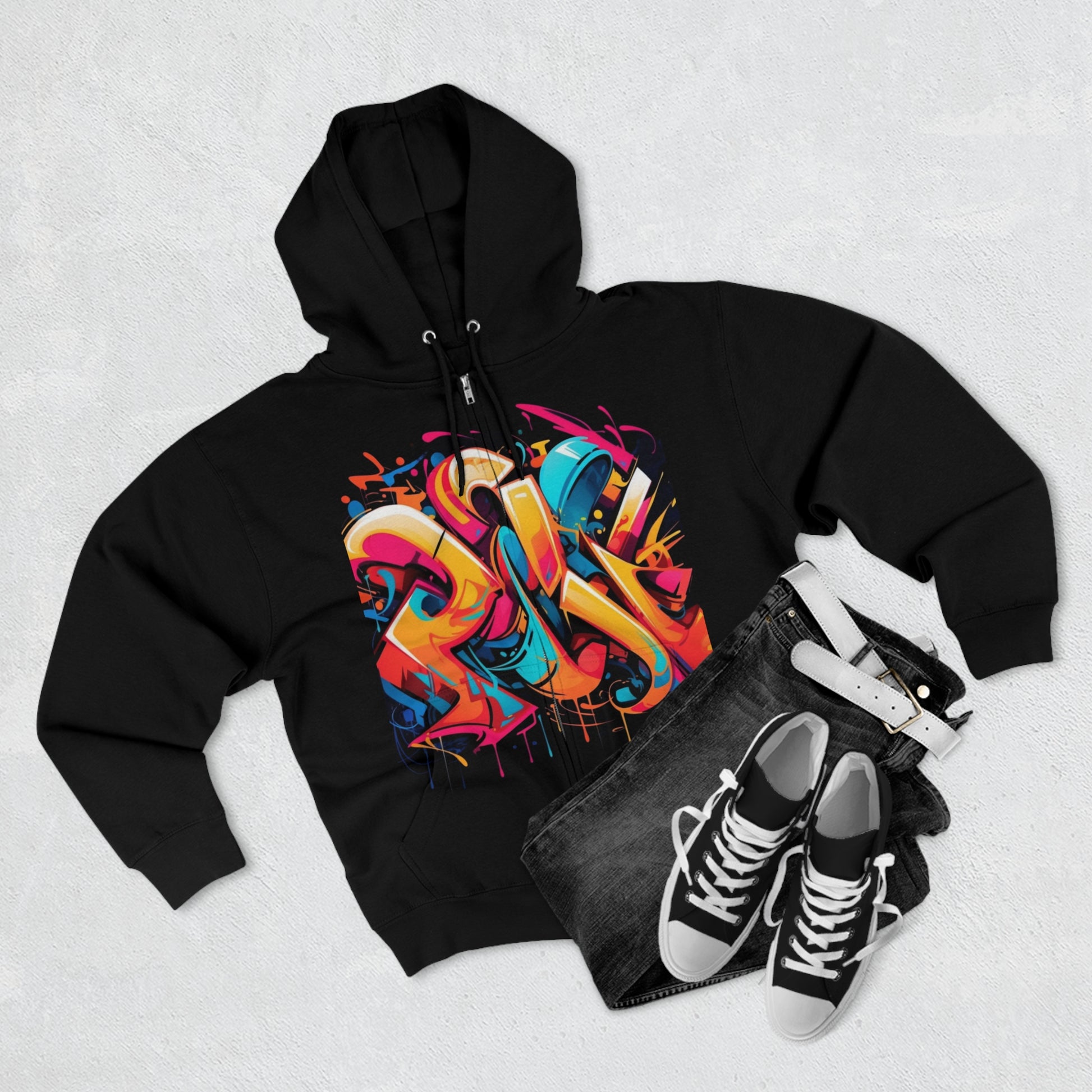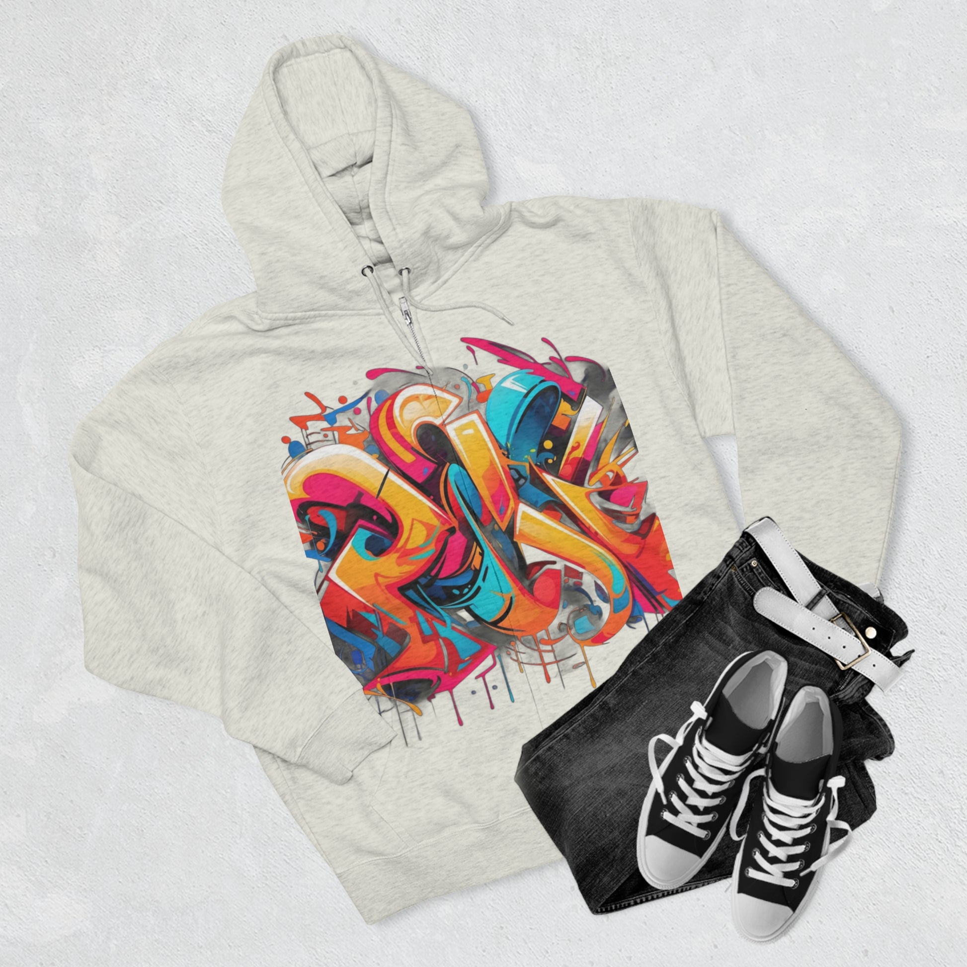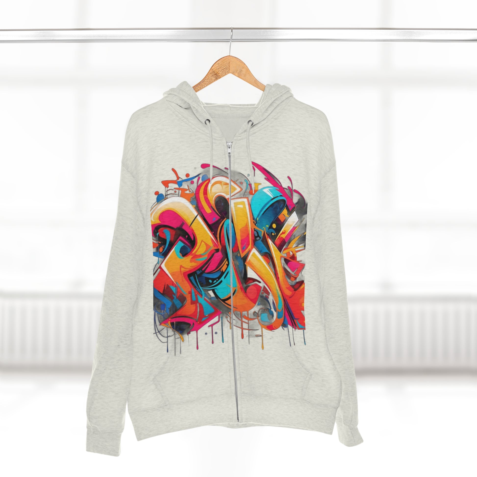 "Graffiti Chic Hoodie" - Hoodies Zip Up Long Sleeve Fleece Sweatshirts Hoodies