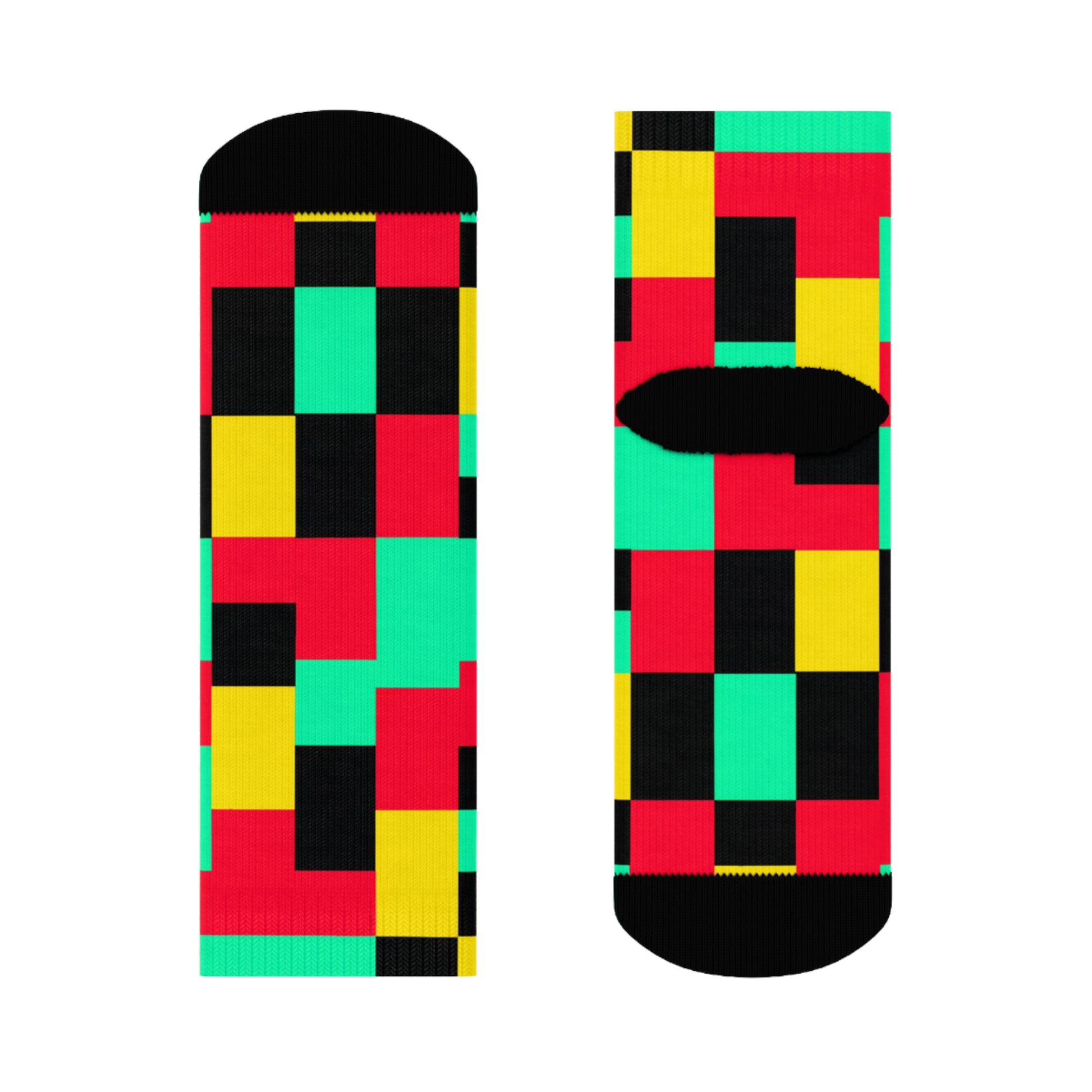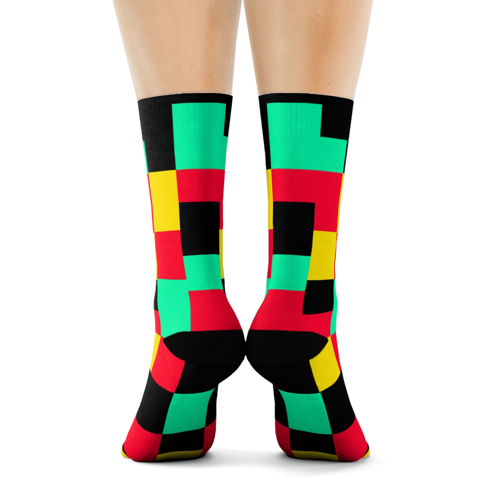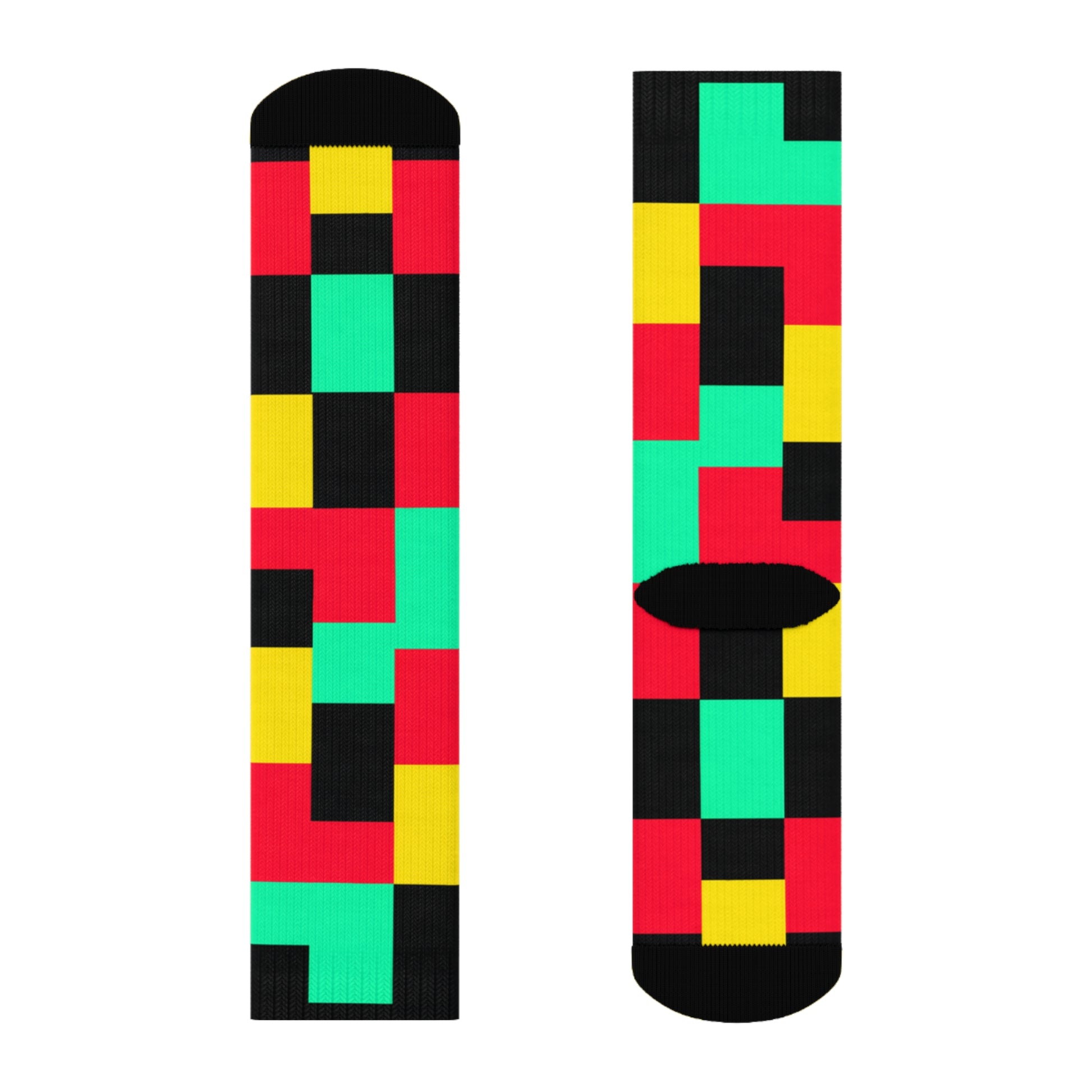 "Pixel Pop Crew Socks: Bold and Bright 16-Bit Textile Designs for Retro Gamers" - Men and Women Crew Socks Combed Athletic Sports Casual Classic