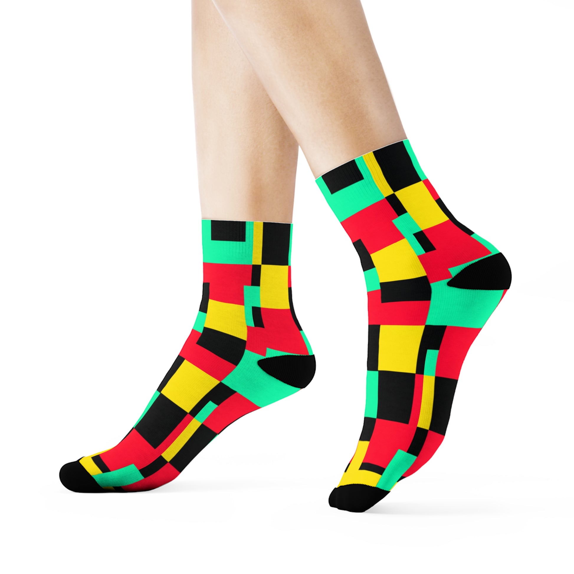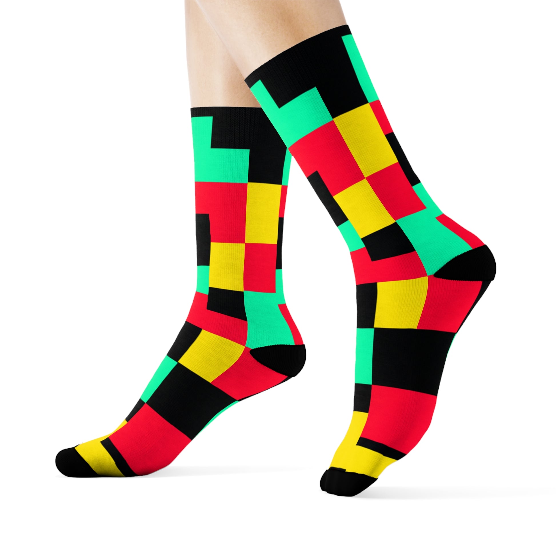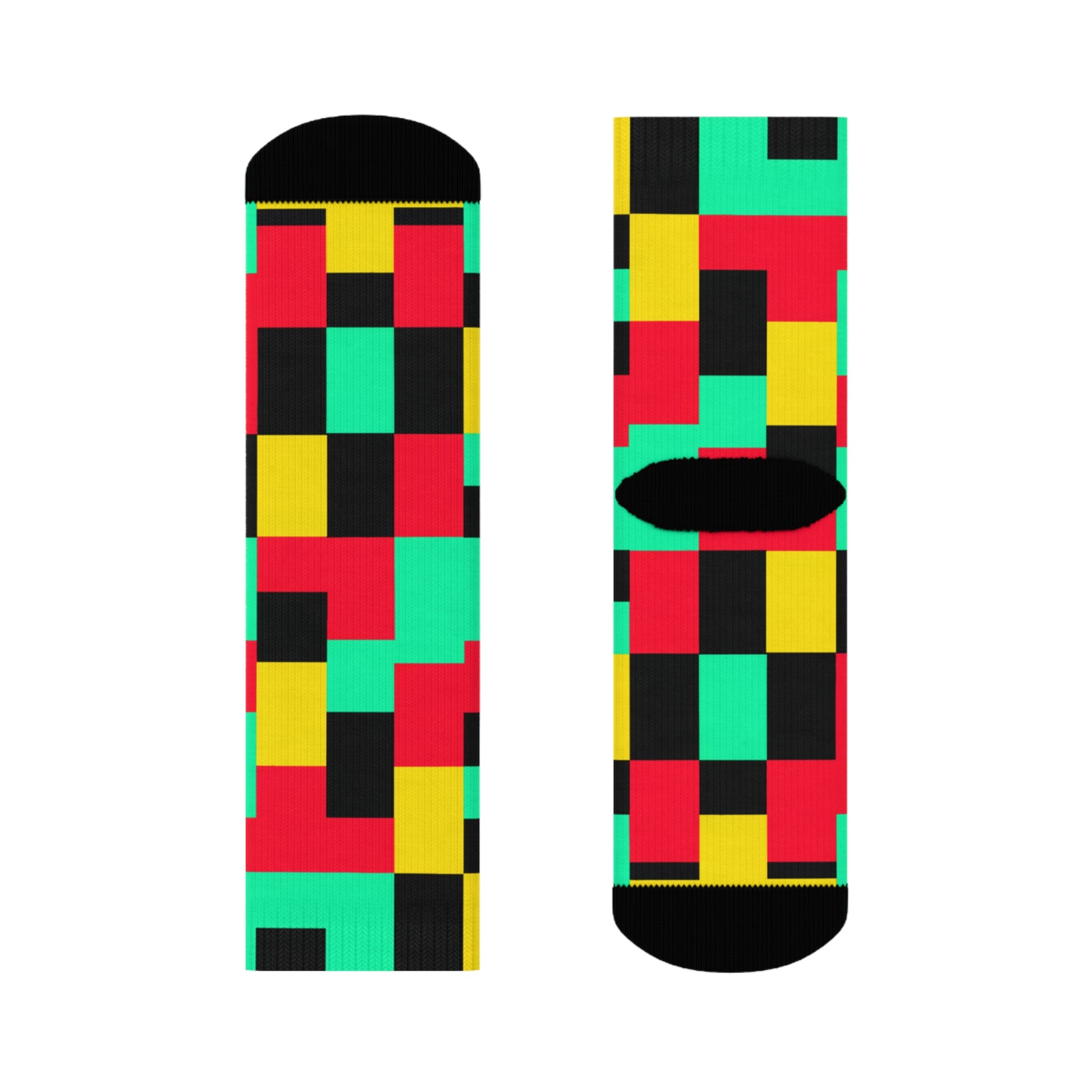 "Pixel Pop Crew Socks: Bold and Bright 16-Bit Textile Designs for Retro Gamers" - Men and Women Crew Socks Combed Athletic Sports Casual Classic