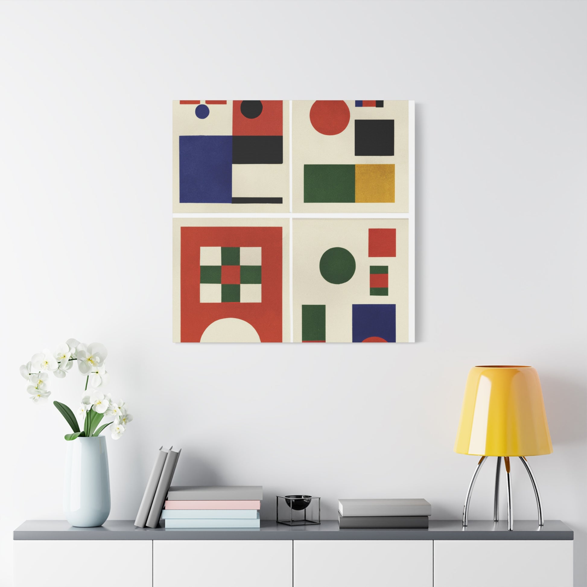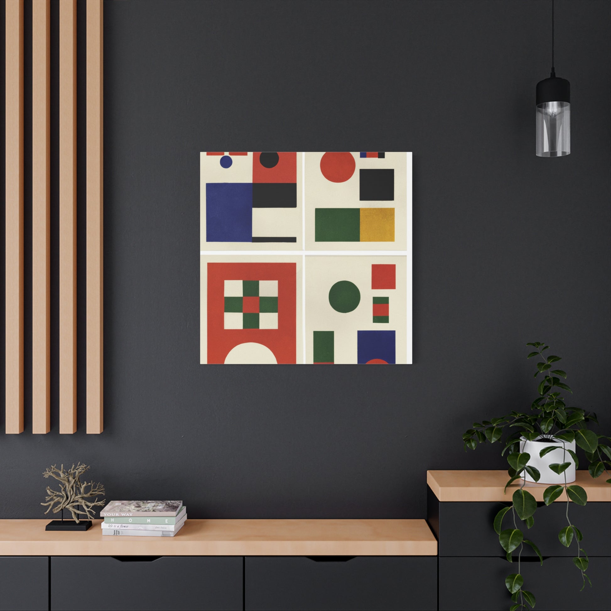 "Geometric Gallery" - Framed Canvas Print Colourful Wall Art