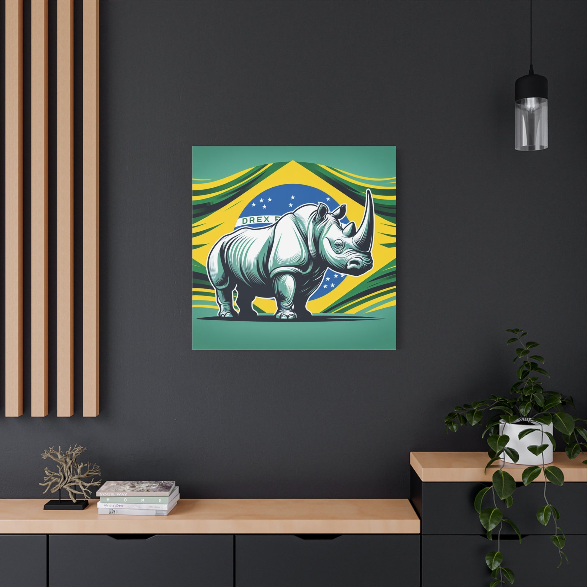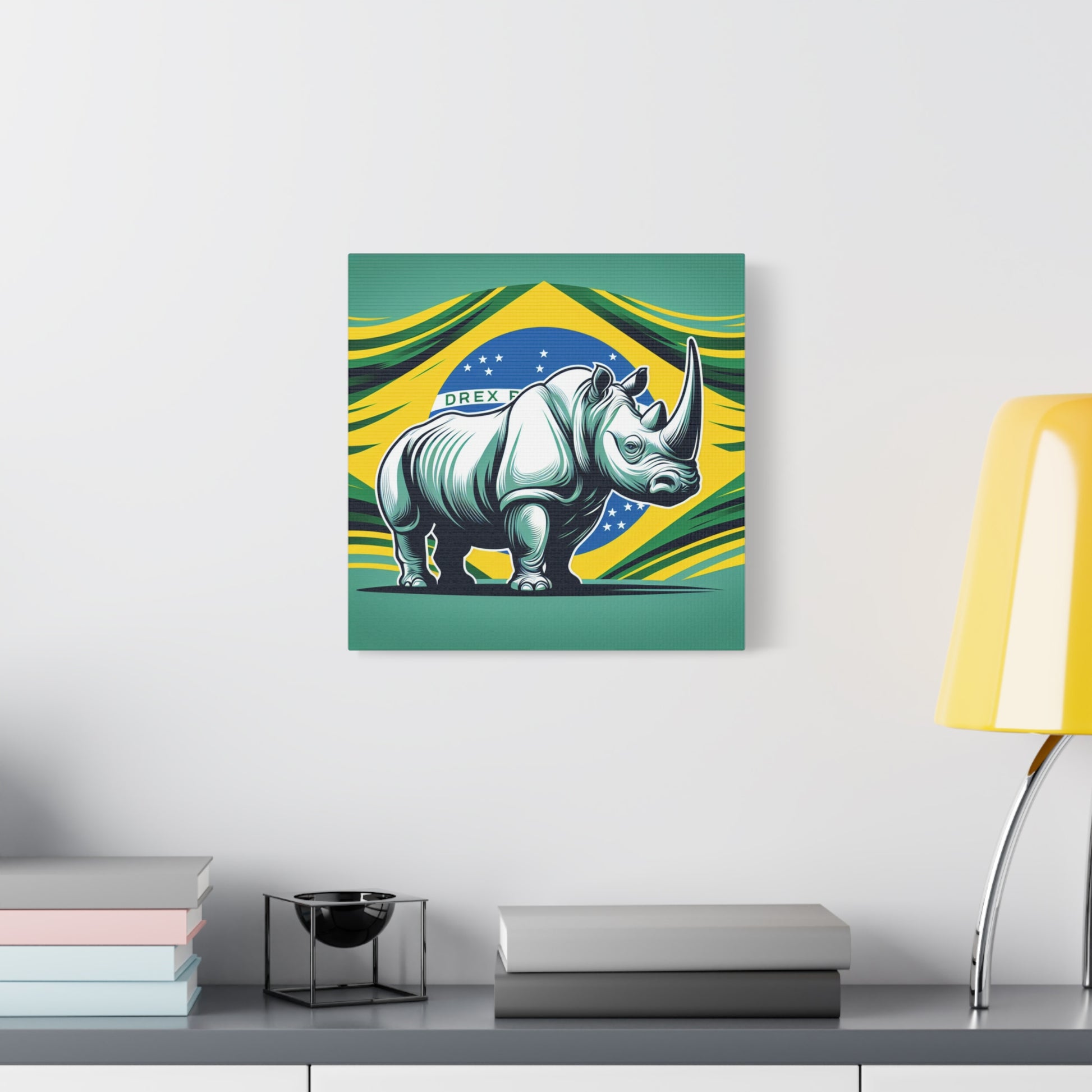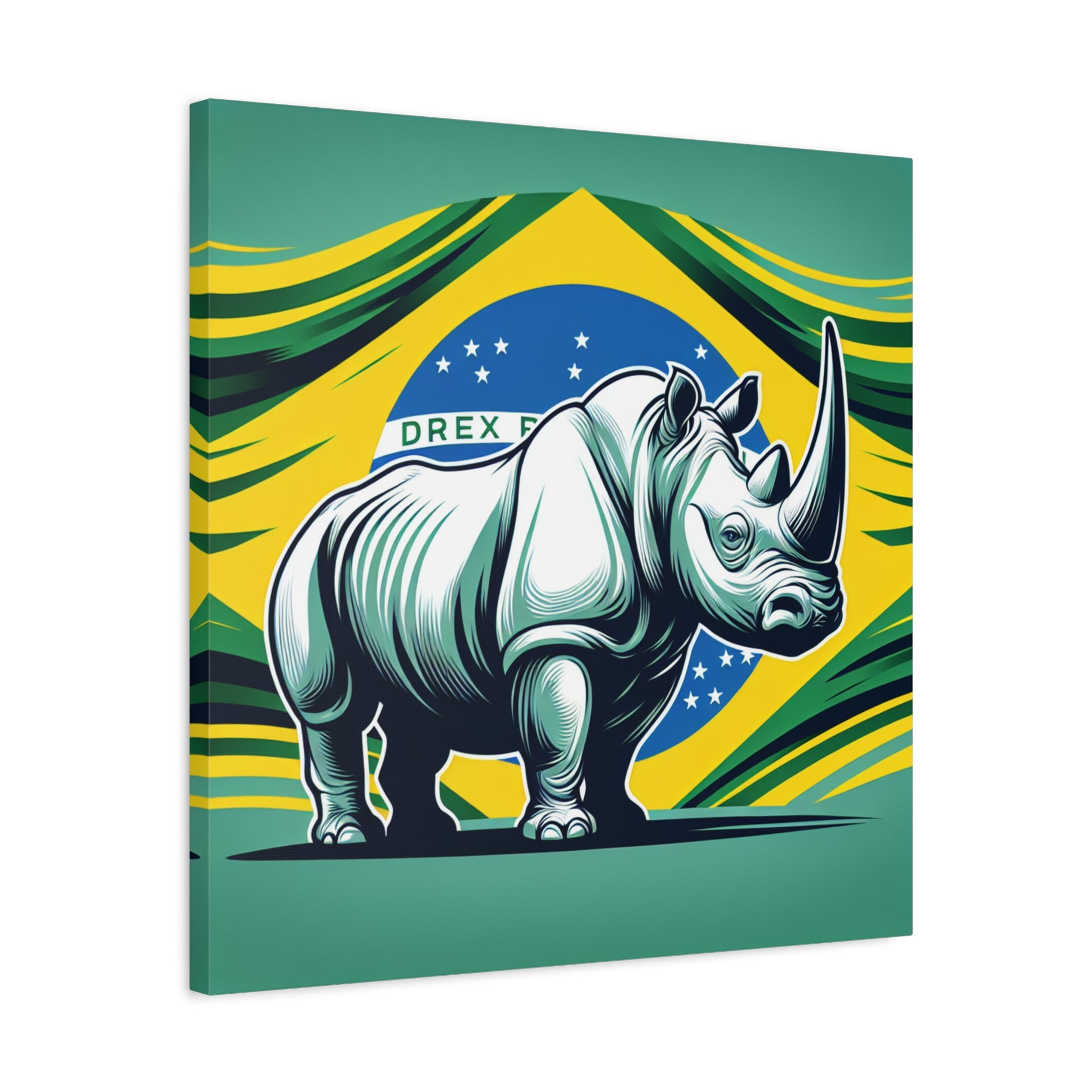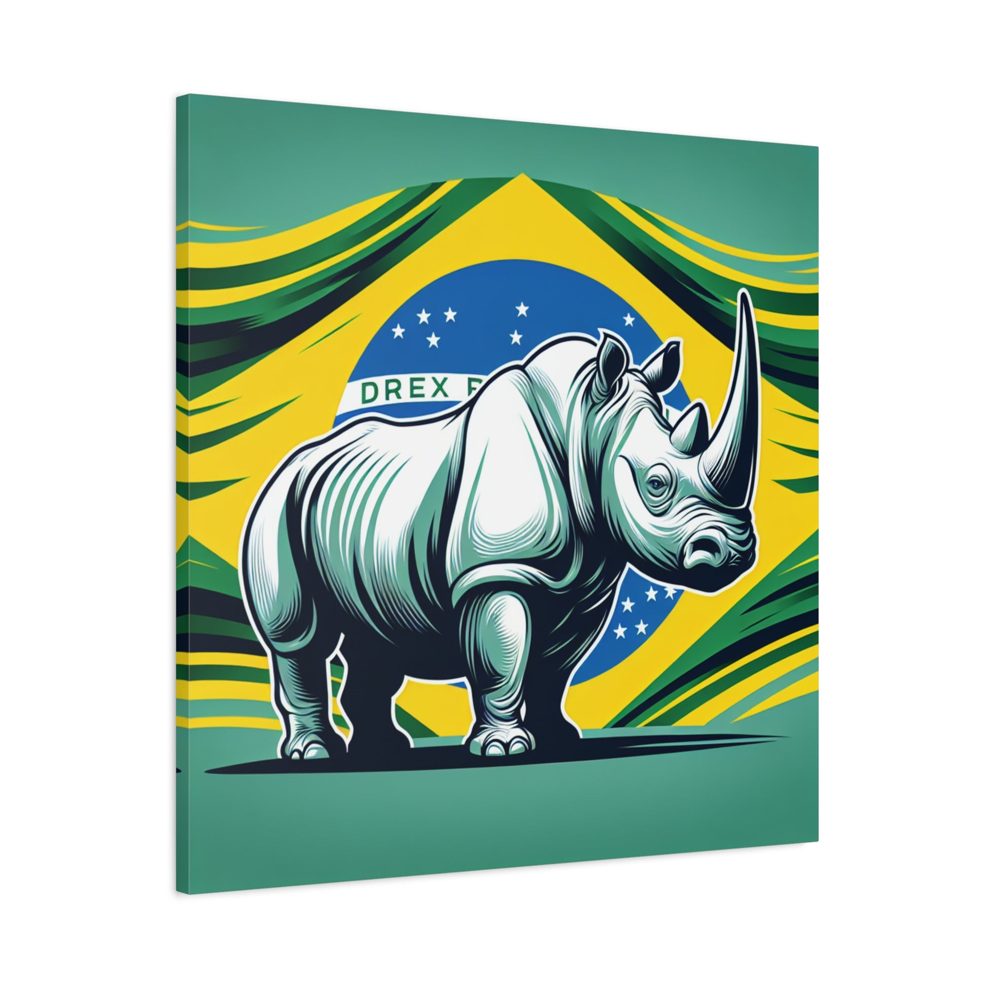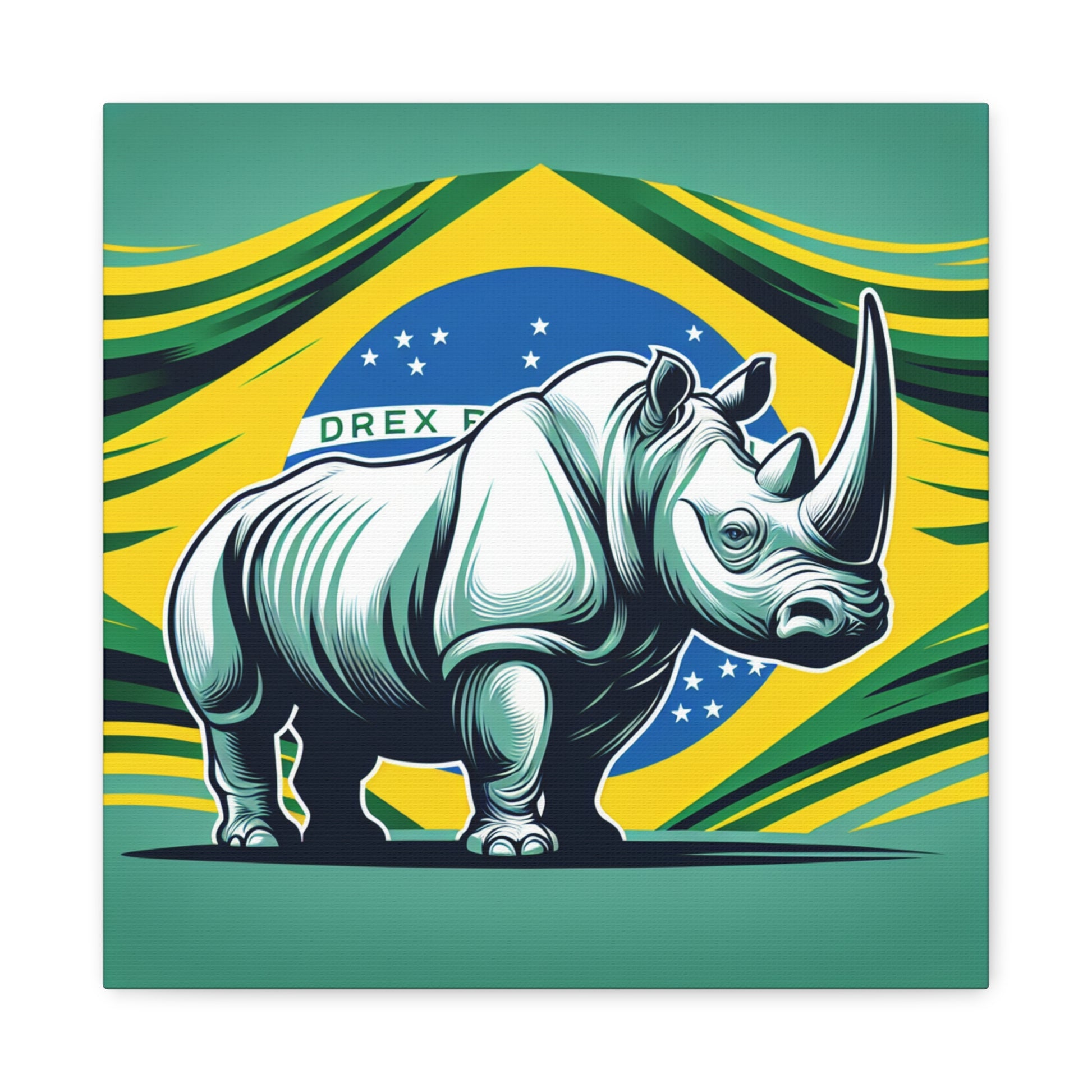 "Rinoceronte Brazil" - Framed Canvas Print Colourful Wall Art